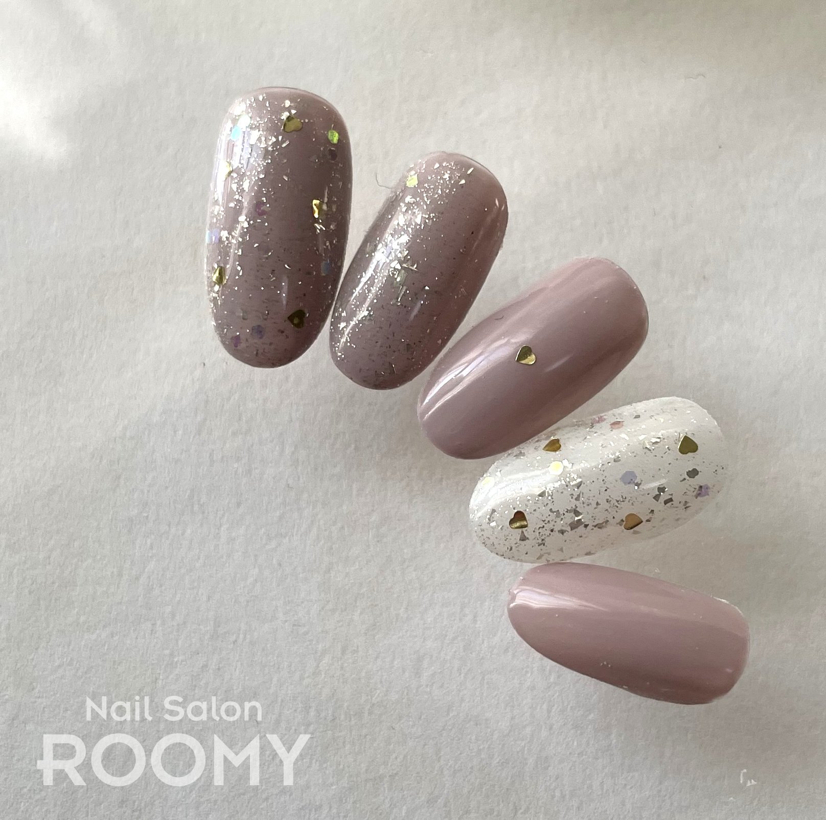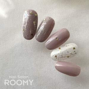 ハートがまざったラブリーネイルです。