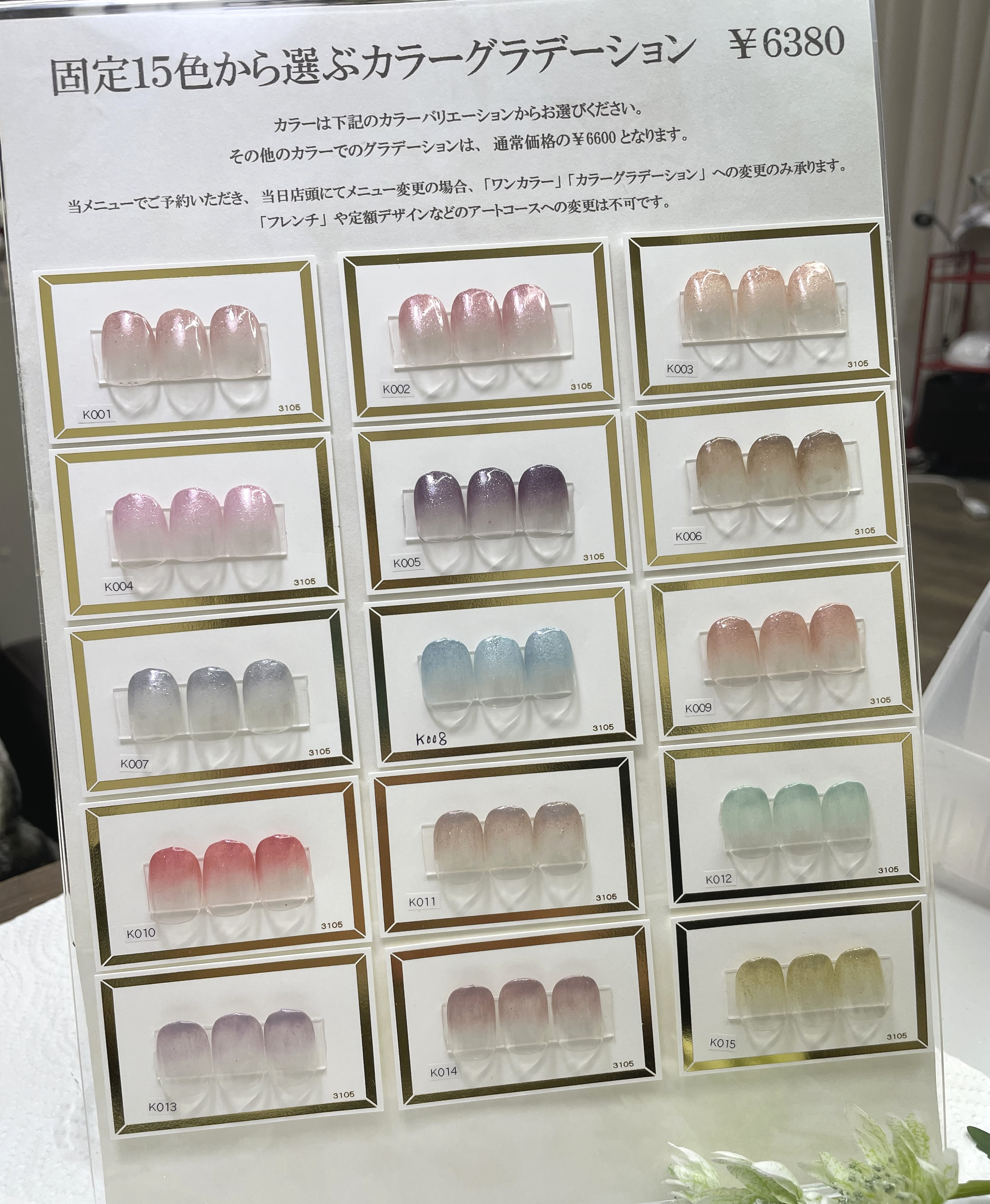 当日店頭でメニュー変更はラメグラ・ワンカラーにのみ変更可能(その他は×)です。