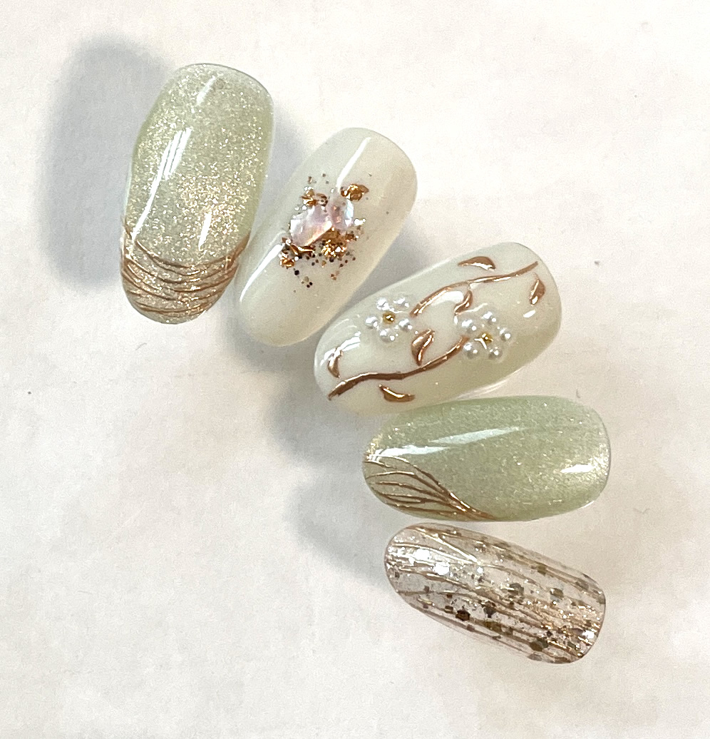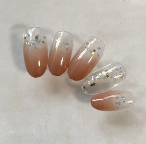 クリアベースに軽やかゴールドを散らしたデザイン。