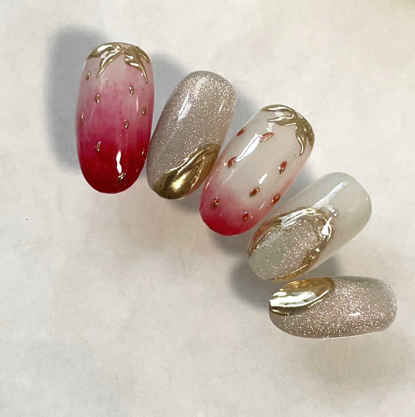 白っぽいのも含めたいちごちゃんネイル<26W0303>